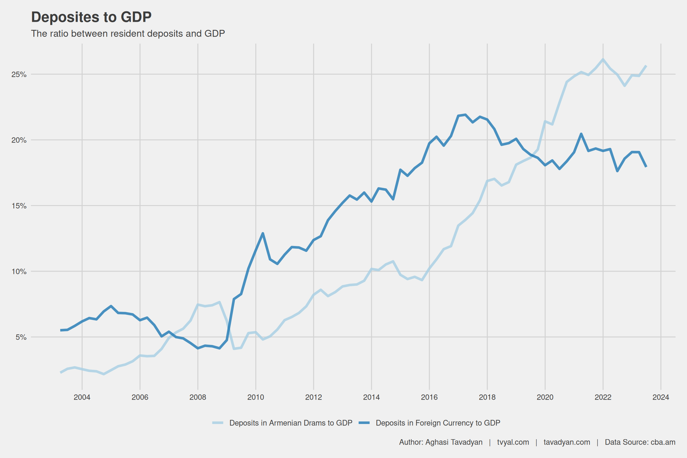 Chart 3. Ratio of Armenian Dram and Foreign Currency Deposits to GDP