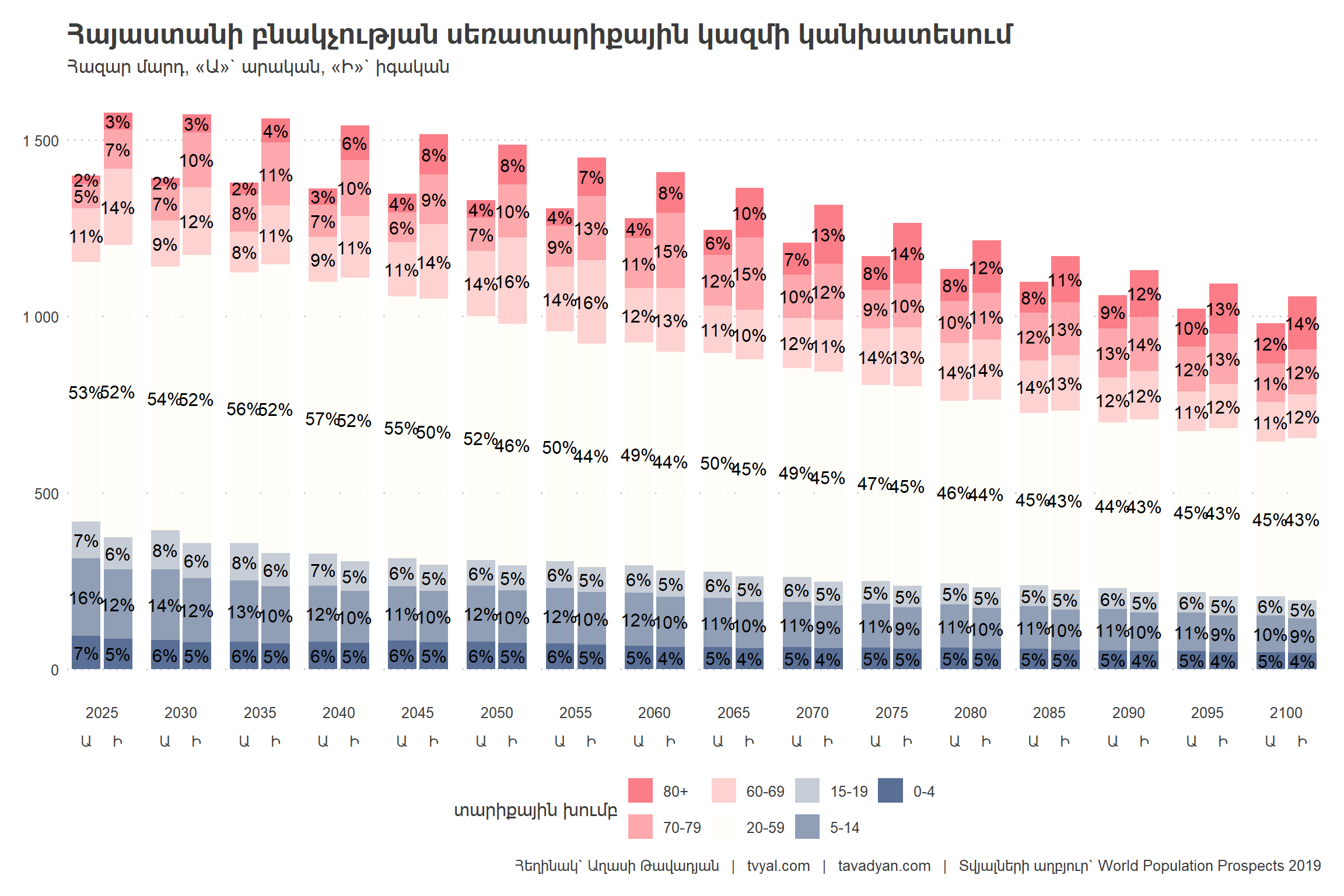 By 2100, all other conditions being equal, 2 million Armenians will live in Armenia.