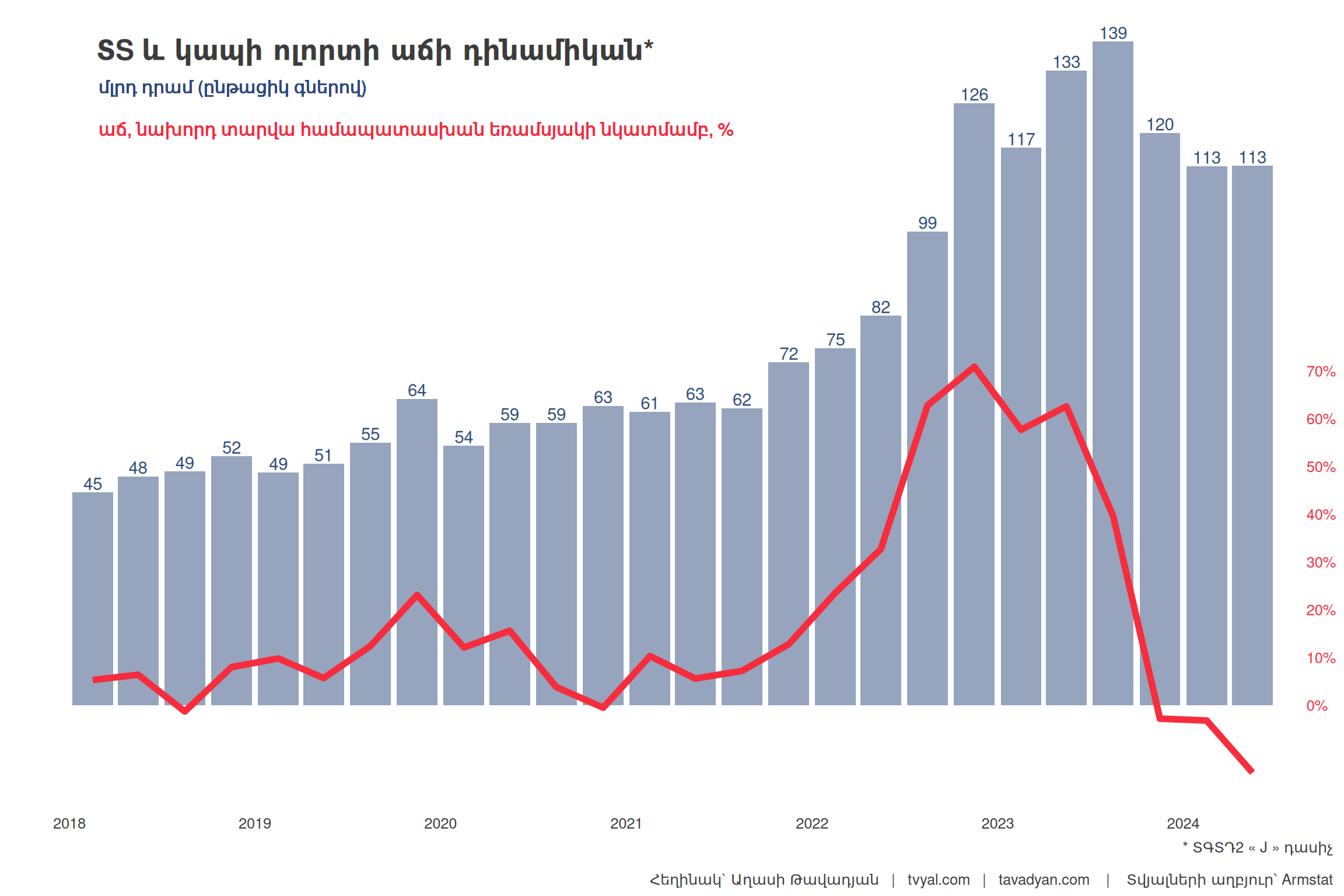 - Capital outflow: Recently, capital outflow and reduced inflows have been observed in Armenia. IT professionals arrived with capital and are leaving with it. We noticed capital outflow trends earlier this year, as discussed in the article ๐ธ๐๐ฆ Capital outflow.