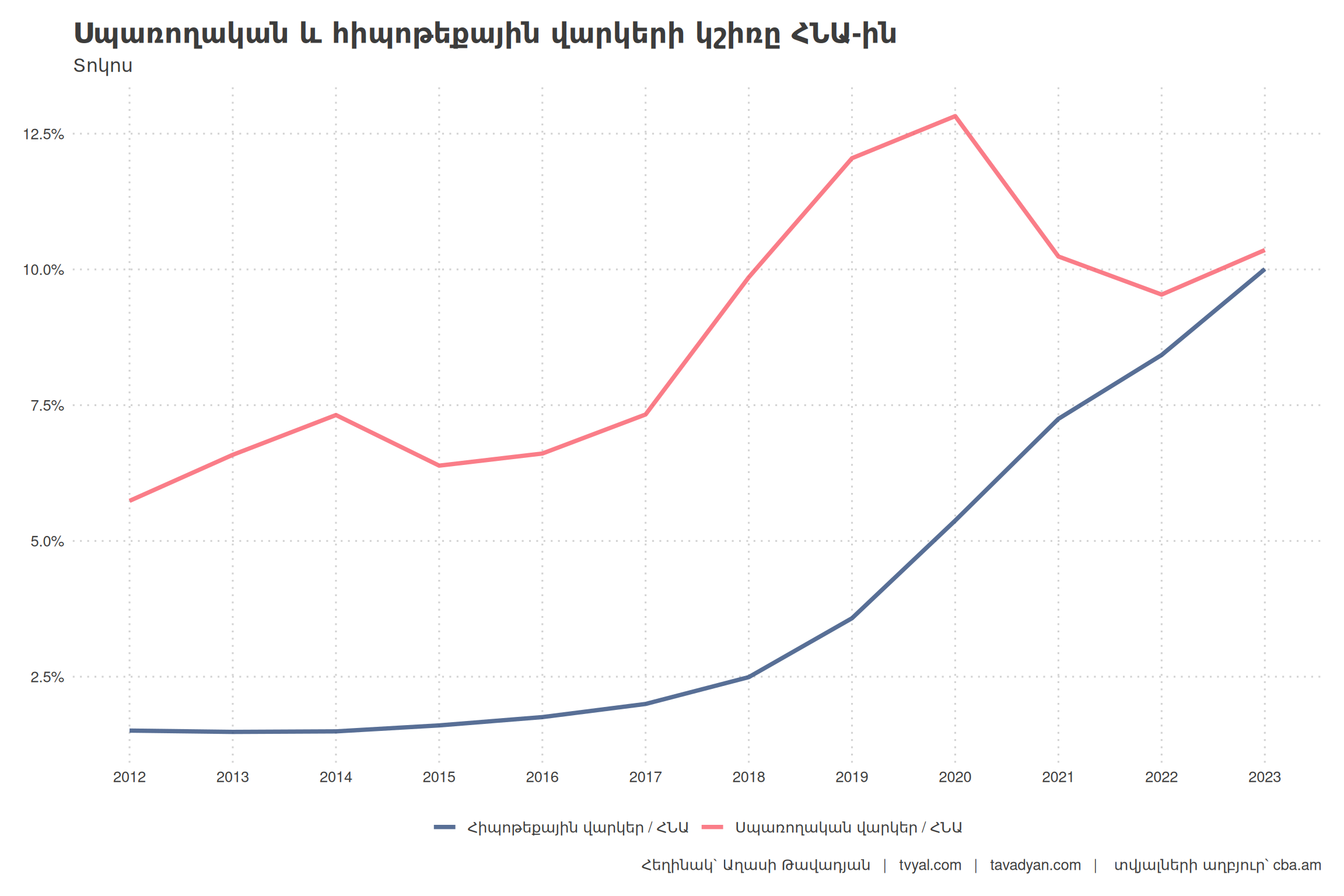 իսկ 2023-ին արդեն 25 տոկոսը։ Այս երկու վարկերը միասին 2018 թվականին ընդհանուր վարկերի 37.5 տոկոսն էին, իսկ 2023-ին արդեն 50.3 տոկոսը։