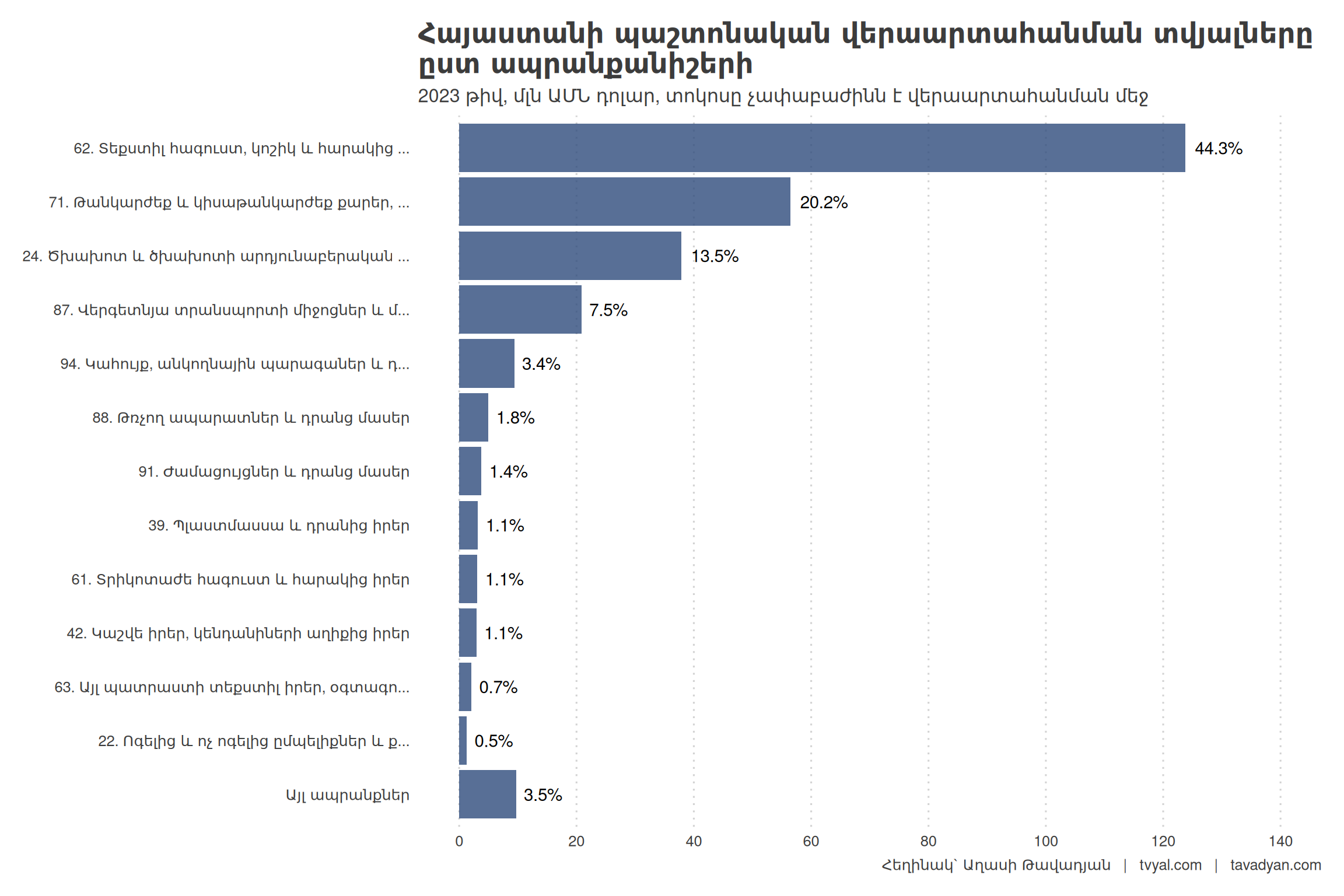 Экспорт Армении возрос на 79% в 2022 году, экспорт в Россию увеличился примерно в 3 раза (на 197,9%), а в 2023 году рост экспорта составил 55,3%, экспорт в Россию увеличился на 43,3%, в Объединенные Арабские Эмираты — в 4,2 раза (на 316,8%). Данный факт также свидетельствует о росте реэкспорта — в первую очередь вследствие российско-украинского конфликта. Разработка новой методологии, посредством которой возможна оценка реальных показателей реэкспорта Армении, является целью данного анализа.